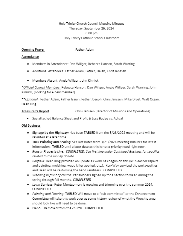 Holy Trinity (Haugen) – Parish/Finance Council