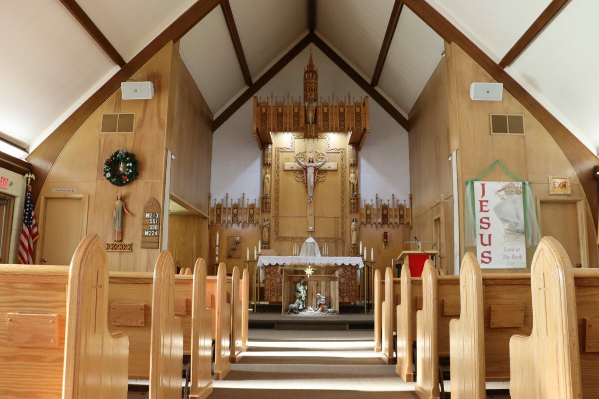 This church boasts an altar that was hand-carved by Fr. Clarence Ludwig (pastor in 1953). At that time, he had a workshop built near the rectory. He constructed the altar and many carvings found in the church today and it is built almost entirely with dimensional birch wood. Truly a stunning sight!